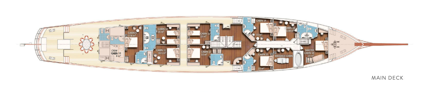 Indulge in unmatched luxury and comfort aboard M/Y Casablanca, a stunning superyacht designed for those who seek the perfect blend of relaxation, adventure, and world-class service. With 18 opulent en-suite cabins, Casablanca can accommodate up to 36 guests, ensuring a personalized and exclusive cruising experience. Guests can unwind on the expansive 250m² sundeck, take a dip in the saltwater pool, or relax in the wellness and spa zone, which features a sauna, massage pool, and a dedicated massage room.